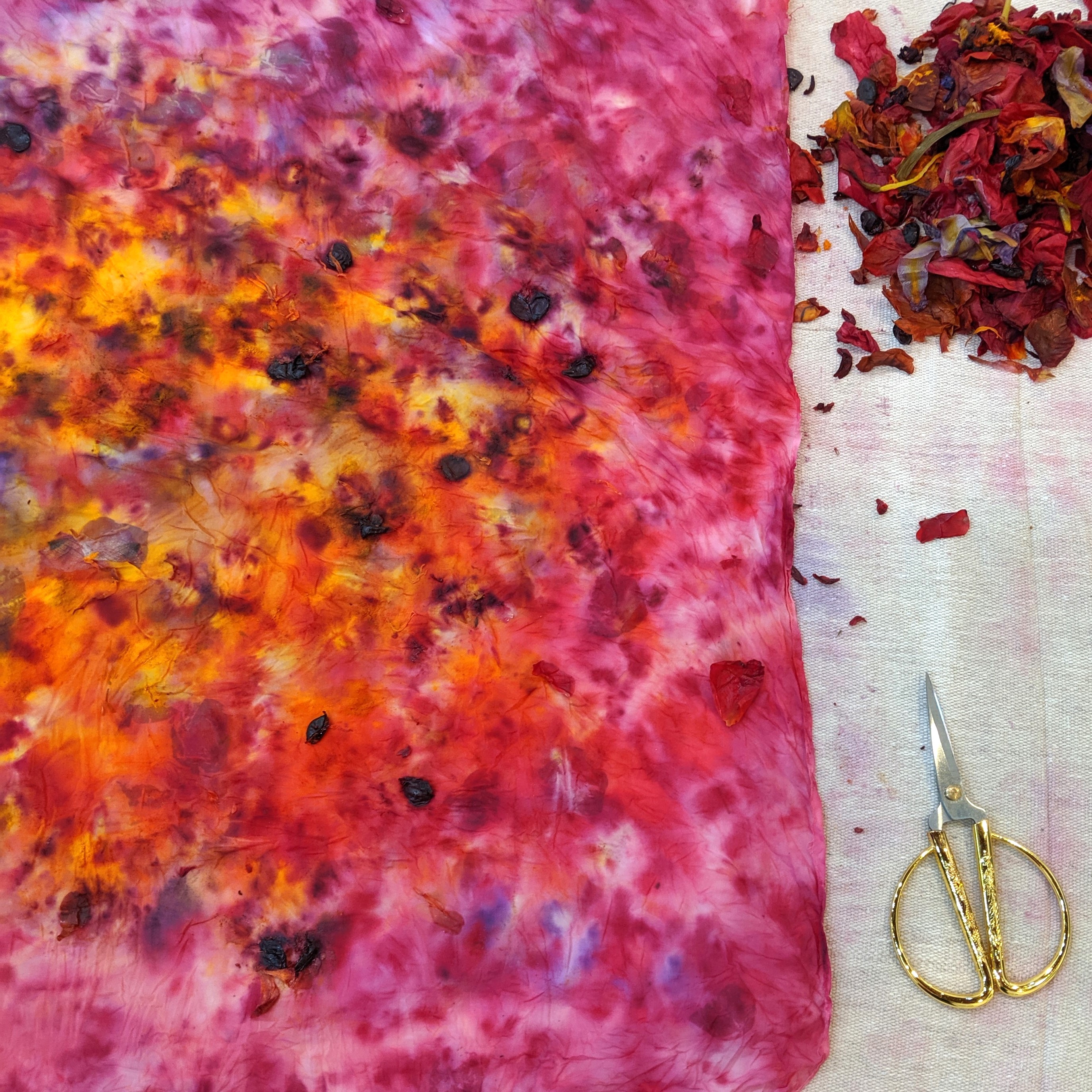 Fiber Arts | Natural Dye: Bundle Dye Workshop Explore natural dye color! Returning Spring 2026! Select a date from the drop-down menu. In this 2-hour workshop, explore eco-bundle dye, the art of infusing natural pigments onto fibers. Join fiber artist Jeanine Ertl and share in the ephemeral, mindful and magical beauty of this serendipitous dye process. You will learn about the gentle, fleeting nature of a diverse array of botanical and kitchen dyes while completing the process from start to finish—mordanting bundling, steaming and finishing. Each student will create two unique silk or cotton squares or scarves. Colors will shift and change before your eyes as you place natural dyestuffs, steam, unroll, and enjoy! And while bundles steam, we will talk about exploring the potential dyes in our homes, gardens and local area. Students are welcome to bring in their favorite flowers to explore using in your bundle. Each participant will leave with a booklet on the Eco-Bundle Dye process and two bundle dyed pieces. Ages 12+ years welcome, or 8+ years with an adult. If adult and child would like to make their own pieces, please purchase two spaces. All materials included. • Military, first responders and sibling discounts: Email us for more information. • Scholarships available: Click here for an application. • Homeschool funds accepted: Click here for enrollment details. • If this class is full, join the Interest List to be notified. • If you would like to be notified of future offerings, join the Interest List to be notified when new dates or spaces are available. This product is currently Sorry, this class is full and unavailable. Category: Past Classes Tags: craft, DIY, eco-friendly, handmade, natural, natural dye, scarves, silk, slow-crafted, workshop Description Additional information Reviews (0) Description Fiber Arts | Natural Dye: Bundle Dye Workshop Select a date from the drop-down menu. San Diego Craft Collective, 2590 Truxtun Rd., Studio 106, SD 92106 • 619.273.3235 • make@sandiegocraft.org This workshop is held outdoors, so we suggest: • Dress in layers, bring a jacket, hat, etc. so you can adjust to the weather. • Bring water/beverage and a snack if you need to be comfortable. • Bring an apron or wear comfortable clothes that can get messy. DIRECTIONS: Located in Liberty Station’s Arts District, you can find our studio at the end of the hallway on the 1st floor of the Dorothea Laub Music & Arts Center (Bldg 176) at the corner of Roosevelt & Truxtun, next to The Lot movie theater. There is plenty of free parking. Parking Lot Q is behind our studio — enter via the driveway off Dewey. Across the street in the Vons parking lot, it is also free. If you can’t find us, call or text 619.273.3235. CLASS SIZE: 5 min. If the minimum is not met, you will receive a full refund or credit toward another class. REFUNDS: No refunds for tardiness or no-shows. For a refund (minus a 5% processing fee), you must cancel 7 days before the start of the class. After 7 days, we cannot offer refunds, as materials and supplies have already been purchased. TRANSFERS: You may transfer your enrollment spot to someone else, but transfers must happen before the workshop begins. Please email us to let us know who’s coming. INTEREST LIST: If a class is full or you would like to be notified of future offerings, join our Interest List to be notified when new dates or spaces are available. ABOUT THE INSTRUCTOR: Always interested in finding ways to add harmony, beauty and depth to my life and space, my journey with fiber and textiles began as a child. I adored piles of colorful yarn and fabric. I had always felt, that in some other life, I’d been someone who breathed life into these mediums. As my path wound its way, I fell in love with the nature of story and pursued Literature & Ethnic Studies at UC Berkeley. After Peace Corps service in a tiny village in the Amazon Rainforest, I returned to California and spent the next decade working, starting a family, and eventually, exploring fiber arts. I learned to weave at a Cistercian monastery on the Lost Coast of California, and quickly found my life-long passion. I am nurtured, connected and aligned while weaving. And Intuitive Weaving, as I call it, has been a place of unpacking emotions; subconsciously discovering new frontiers; understanding intertwinement; and learning to be gracious, not just with the world, but with myself. My small business, ANINI Designs, now specializes in offering a variety of craft supplies — natural dyes, natural fiber dyeables, and handwoven &/or hand-dyed textiles. I enjoy creating a sustainable, eco-friendly, inspiring future of mindfully making, exploring and teaching these craft mediums to you. – Jeanine Ertl, Owner, Weaver, Natural Dyer & Educator at ANINI Designs Additional information Choose 2 items to dye 2 Silk Scarves, 2 Silk Squares, 1 Silk Scarf & 1 Silk Square, 2 Bamboo Scarves *vegan, 2 Cotton Squares *vegan, 1 Bamboo Scarf & 1 Cotton Square *vegan Reviews There are no reviews yet. Be the first to review “Fiber Arts | Natural Dye: Bundle Dye Workshop”Your email address will not be published. Required fields are marked *Your rating * Rate… Perfect Good Average Not that bad Very poor Your review *Name * Email * You may also like… Fiber Arts | Natural Dye: Locally Foraged Acorn & Gall Dye & ShiboriRated 5.00 out of 5 Read more Fiber Arts | Weaving: Learn to Warp + Weave on a Rigid Heddle LoomRated 5.00 out of 5 $215.00 Select options This product has multiple variants. The options may be chosen on the product page Fiber Arts | Weaving: Intuitive Weaving – The Basics & BeyondRated 5.00 out of 5 $130.00 Select options This product has multiple variants. The options may be chosen on the product page Fiber Arts | Weaving: Learn to Weave with Silk FiberRated 5.00 out of 5 Read more Fiber Arts | Natural Dye: Indigo Dyeing & Traditional Shibori TechniquesRated 5.00 out of 5 Read more Fiber Arts