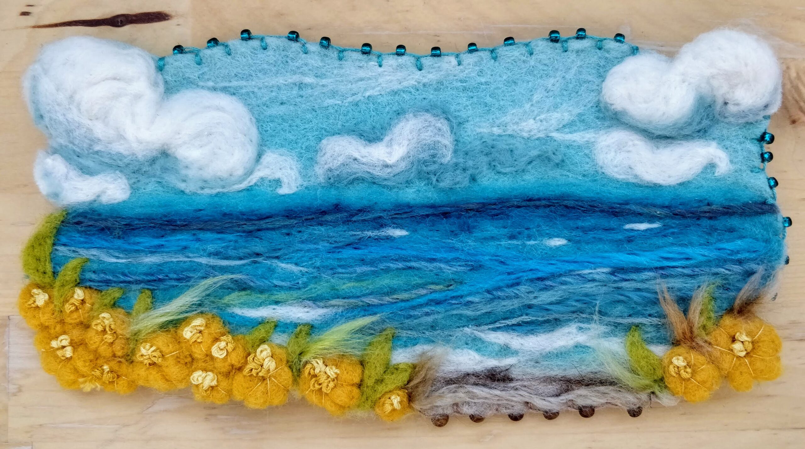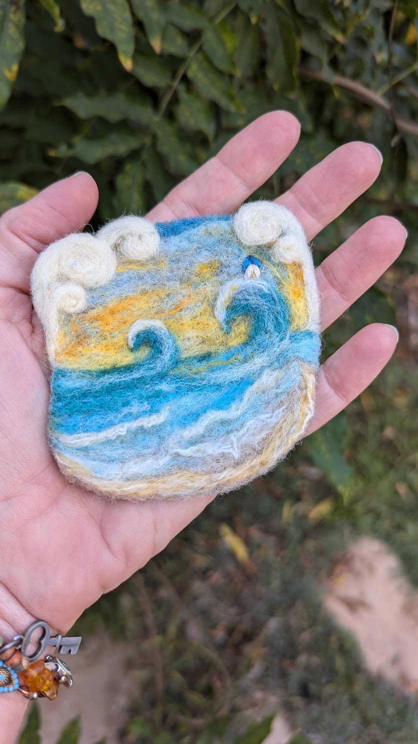 Fiber Arts | Felting: Wool Needle Felted Sea & Landscapes Learn to needle felt! Select a date from the drop-down menu. Experience the magic of wool and learn how to paint using needle felting techniques! In this 3-hour workshop, we will create a marine landscape by layering and felting wool, as well as blending colors together. The addition of yarns will add texture and hues to your creation. Ocean and sunset make wonderful subjects for needle paintings! This class requires the use of sharp needles and you will be provided with fingers guards. No experience necessary. Ages 12+ welcome. Materials fee of $5 (cash only) to be paid to the instructor at the start of the class. • Military, first responders and sibling discounts: Email us for more information. • Scholarships available: Click here for an application. • Homeschool funds accepted: Click here for enrollment details. • If this class is full, join the Interest List to be notified. • If you would like to be notified of future offerings, join the Interest List to be notified when new dates or spaces are available. This product is currently Sorry, this class is full and unavailable. Category: Past Classes Tags: craft, DIY, eco-friendly, felting, handmade, natural, needle felting, slow-crafted, teen workshop, wool, workshop Description Reviews (0) Description Fiber Arts | Felting: Wool Needle Felted Sea & Landscapes Select a date from the drop-down menu. Materials fee of $5 (cash only) to be paid to the instructor at the start of the class. San Diego Craft Collective, 2590 Truxtun Rd., Studio 106, SD 92106 • 619.273.3235 • make@sandiegocraft.org This course is held indoors, so we suggest: • Dress in layers so you can adjust to the studio temperature. • Bring water/beverage and a snack if you need to be comfortable. • Wear comfortable clothes. DIRECTIONS: Located in Liberty Station’s Arts District, you can find our studio at the end of the hallway on the 1st floor of the Dorothea Laub Music & Arts Center (Bldg 176) at the corner of Roosevelt & Truxtun, next to The Lot movie theater. There is plenty of free parking. Parking Lot Q is behind our studio — enter via the driveway off Dewey. Across the street in the Vons parking lot, it is also free. If you can’t find us, call or text 619.273.3235. CLASS SIZE: 4 min. If the minimum is not met, you will receive a full refund or credit toward another class. REFUNDS: No refunds for tardiness or no-shows. For a refund (minus a 5% processing fee), you must cancel 7 days before the start of the class. After 7 days, we cannot offer refunds, as materials and supplies have already been purchased. TRANSFERS: You may transfer your enrollment spot to someone else, but transfers must happen before the workshop begins. Please email us to let us know who’s coming. INTEREST LIST: If a class is full or you would like to be notified of future offerings, join our Interest List to be notified when new dates or spaces are available. ABOUT THE INSTRUCTOR: I am a French and American textile artist working mostly with wool and yarn. I started needle felting about 10 years ago, creating dimensional landscapes that talk about our place in nature and our connections to each other. I love needle felting wool so much for the freedom it offers as a medium and for its fast learning curve. There is also a depth in the colors that is really mesmerizing. It is my pleasure to introduce people to this different way of creating art, in classes here at the fantastic San Diego Craft Collective that show techniques and tools so you can leave with something you’re happy to have made! My work has been shown in local galleries here in San Diego and in Saint Malo, France. It can also be found for sale at the San Diego Museum of Art’s beautiful gift store, at the lovely French Delights coffee shop in Encinitas and occasionally in various art fairs. Reviews There are no reviews yet. Be the first to review “Fiber Arts | Felting: Wool Needle Felted Sea & Landscapes”Your email address will not be published. Required fields are marked *Your rating * Rate… Perfect Good Average Not that bad Very poor Your review *Name * Email * You may also like… Fiber Arts | Weaving: Learn to Weave with Silk FiberRated 5.00 out of 5 Read more Fiber Arts | Felting: Painting with Wool using Wet Felting Techniques Read more Fiber Arts | Weaving: Intuitive Weaving – The Basics & BeyondRated 5.00 out of 5 $130.00 Select options This product has multiple variants. The options may be chosen on the product page Sewing | Family & Beginners Sewing 101: Sewing Machine Basics $60.00 Select options This product has multiple variants. The options may be chosen on the product page Fiber Arts | Weaving: Clasped Weft & Hemstitching on a Rigid Heddle LoomRated 5.00 out of 5 $130.00 Select options This product has multiple variants. The options may be chosen on the product page Fiber Arts | Natural Dye: Intro to Natural Dye & ShiboriRated 5.00 out of 5 $190.00 Select options This product has multiple variants. The options may be chosen on the product page Fiber Arts | Weaving: Learn to Warp + Weave on a Rigid Heddle LoomRated 5.00 out of 5 $215.00 Select options This product has multiple variants. The options may be chosen on the product page Gift CardRated 5.00 out of 5 $15.00 – $500.00Price range: $15.00 through $500.00 Select amount This product has multiple variants. The options may be chosen on the product page